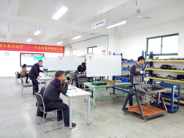 繼汽車營銷技能大賽后, 11月29日下午,我系職業技能大賽活動再度升溫,汽車售后服務以及汽車檢測與維修技能大賽在南區實訓中心展開。廣汽豐田合肥偉世行包河店總經理孟軍、安徽偉業現代汽車銷售服務有限公司經理張慶偉、安徽匯英行汽車銷售服務有限公司經理唐振軍、安徽汽貿中華汽車銷售有限公司經理趙永樂及系相關專業老師參加并擔任評委。