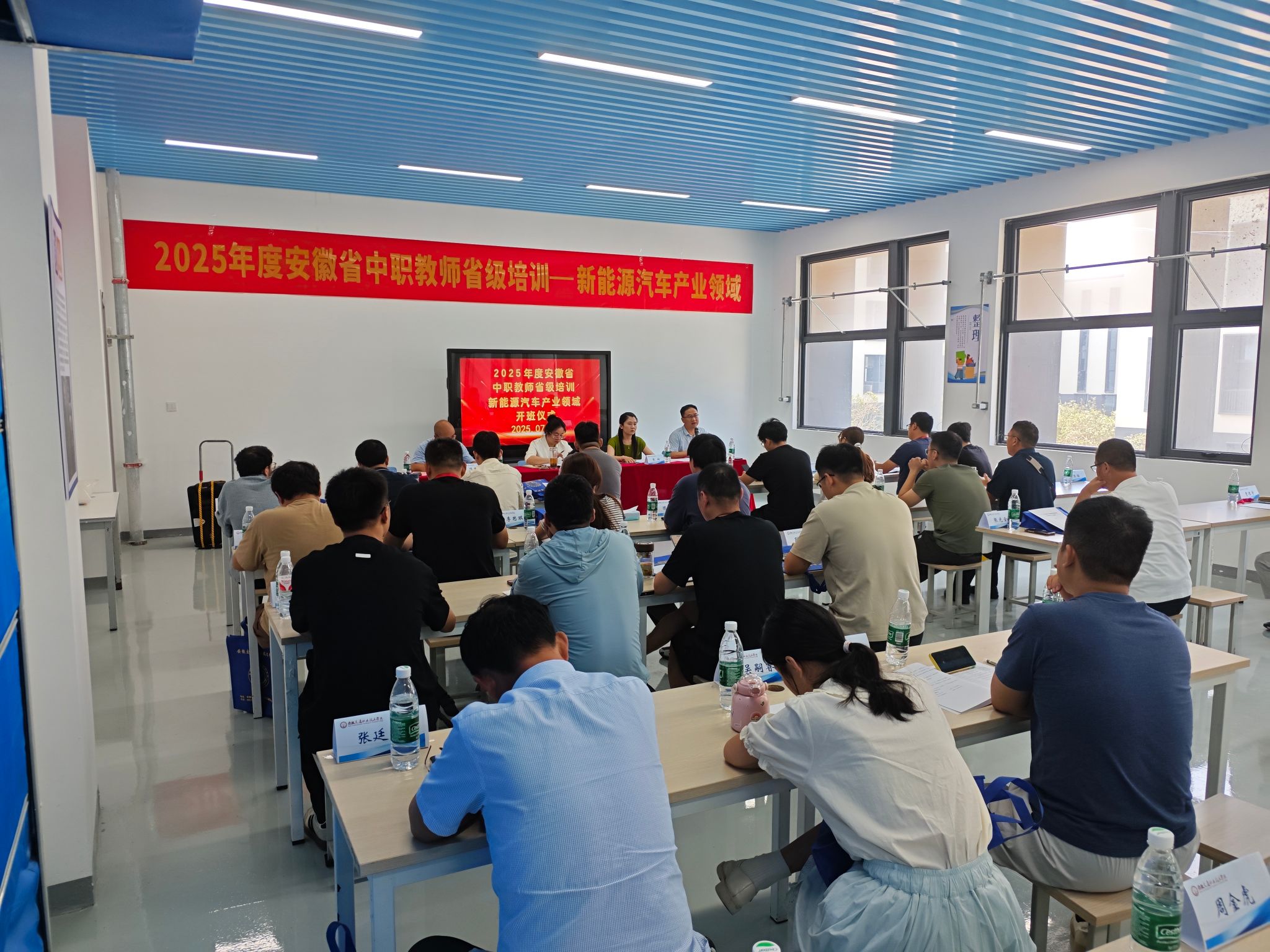 7月7日上午,2025年度安徽省中職教師省級培訓(xùn)《新能源汽車產(chǎn)業(yè)領(lǐng)域》開班儀式在我校舉行。本次培訓(xùn)由省教育廳主辦、學(xué)校承辦,旨在提升中職院校新能源汽車相關(guān)專業(yè)教師的專業(yè)技能與教育教學(xué)能力,為安徽省新能源汽車產(chǎn)業(yè)發(fā)展輸送更多高素質(zhì)技能人才。安徽省中等職業(yè)學(xué)校教師繼續(xù)教育中心主任張嫻,校黨委委員、副校長梁洪波,汽車工程學(xué)院院長湯峰、副院長程章出席開班儀式。儀式由程章主持。