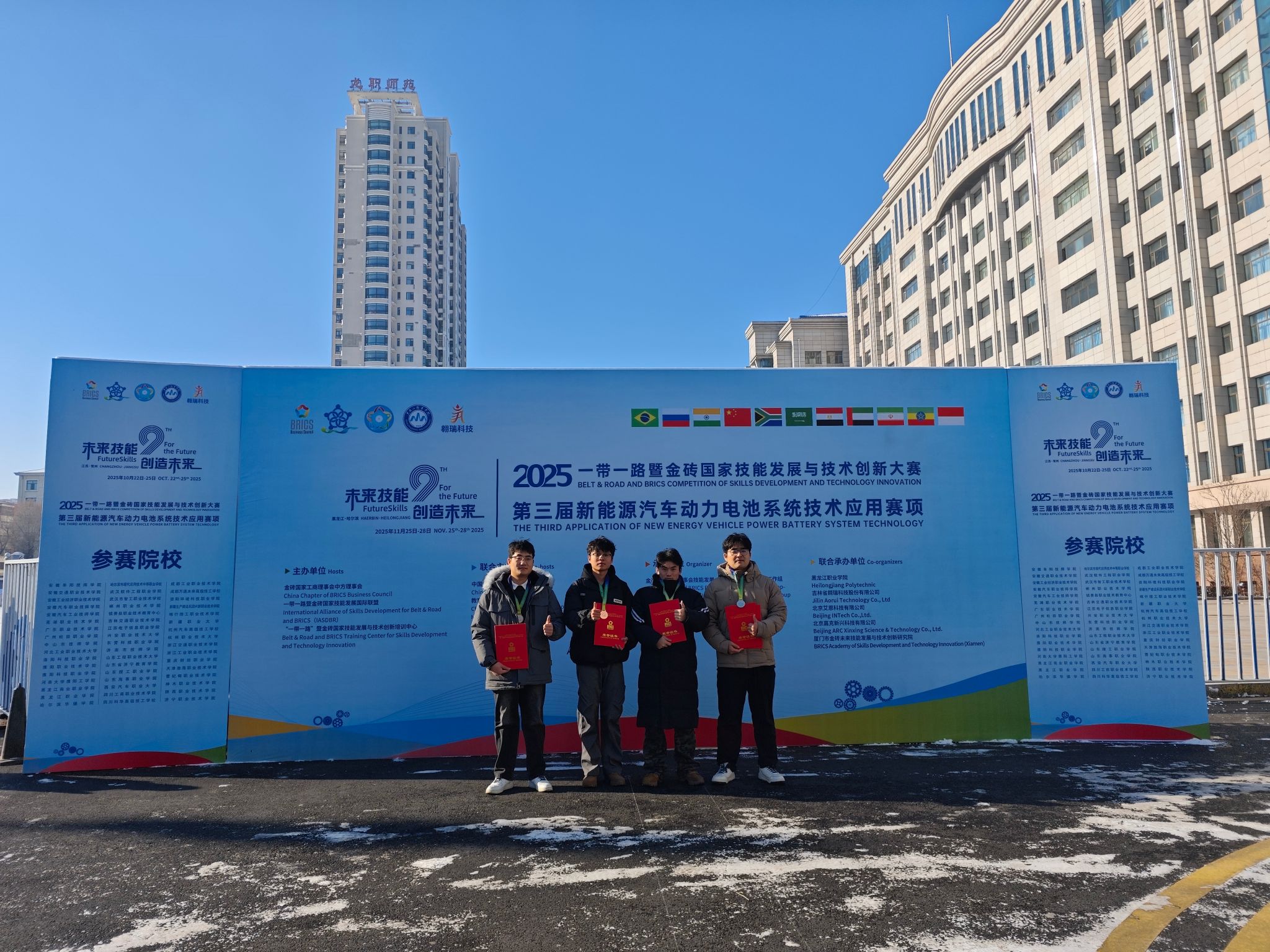 11月24日至28日,2025“一帶一路”暨金磚國家技能發展與技術創新大賽之新能源汽車動力電池系統技術應用賽項在黑龍江哈爾濱舉行。來自全國各省、自治區、直轄市的39支學生代表隊和29支教師代表隊共計136名選手同臺競技。經過兩天的激烈角逐,由武亞峰、趙子龍兩位老師指導的蔣浩東、朱宏博兩位同學組成的參賽隊榮獲學生組三等獎,由武亞峰和趙子龍兩位老師組成的參賽隊獲得教師組二等獎。我院獲“優秀組織獎”稱號。