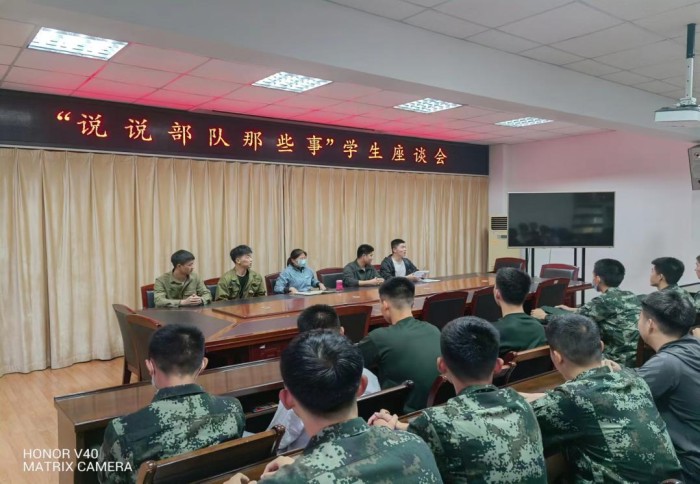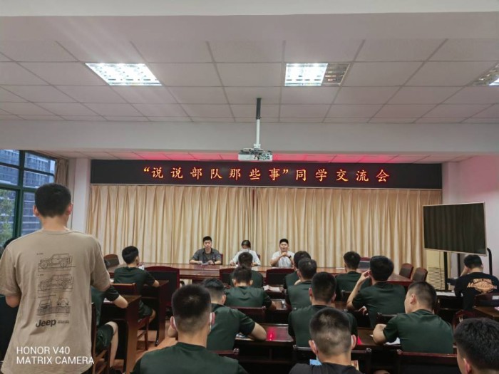交流會向同學們介紹了參軍入伍的福利待遇,以及軍旅生涯中的發展機會。幾位退伍學生分別講述了自己當年“在部隊的那些事”,汪莉則從軍屬的角度為大家講述了她眼中的部隊生活。參會同學們就在部隊如何發展、日常訓練科目、手機使用、外出休假和生活等關心的問題提出了問題,老兵們對其進行了耐心細致的解答。參會師生暢所欲言,氣氛輕松活潑。