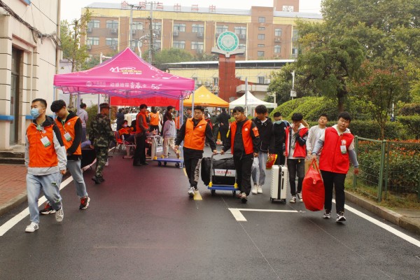 因疫情影響,今年新生的家長不能陪同入校,系里給每個班都配備了比往年更多的志愿者。雖然天公不作美,淅淅瀝瀝下著小雨,但師生志愿者在整個迎新工作中毫無退卻,個個熱情高漲,干勁不減,為新生們運送行李,辦理入學(xué)手續(xù),為新生答疑解惑,成為校園里美麗的風(fēng)景線。