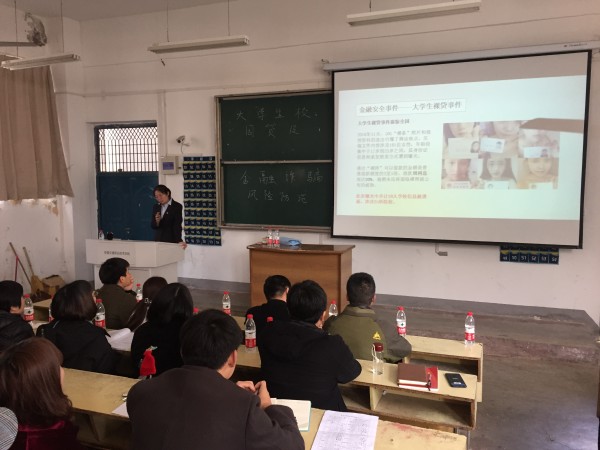 為引導青年學生正確識別與對待“校園貸”,增強風險防范意識,提升金融知識水平。3月21日下午,學院機關黨總支財務處黨支部本著關心學生、愛護學生、服務學生的思想,結合3月份黨員活動日與汽機系黨總支聯合開展送金融知識進校園專題宣講活動。專門邀請了交通銀行安徽省分行專業人士在我院南區教學樓西階101教室開展大學生校園貸及金融詐騙風險防范專題講座。