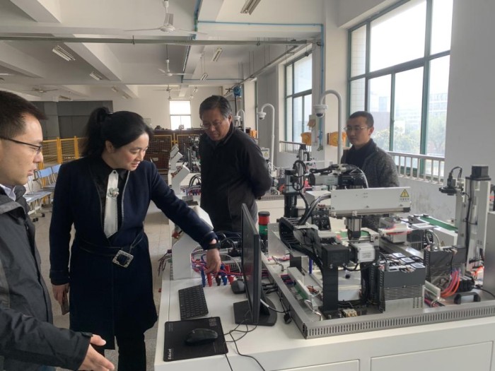 孫丙宇一行首先參觀了汽車與機械實訓中心,對于新能源汽車、智能網聯汽車、工業機器人及無人機等新專業教學實訓室建設的現狀及未來規劃方向給予了充分的肯定。
