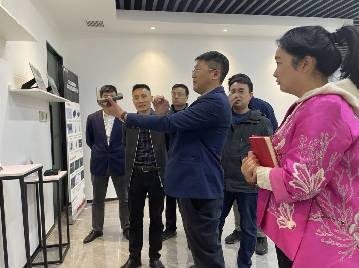 安徽浩康智聯科技有限公司總經理吳長春和教育行業總監楊陽對我系領導、老師一行的到來表示歡迎,介紹了企業概況,并展示了公司的核心前沿產品。梁洪波對公司研發成果贊不絕口,同時也給出了一些發展建議。