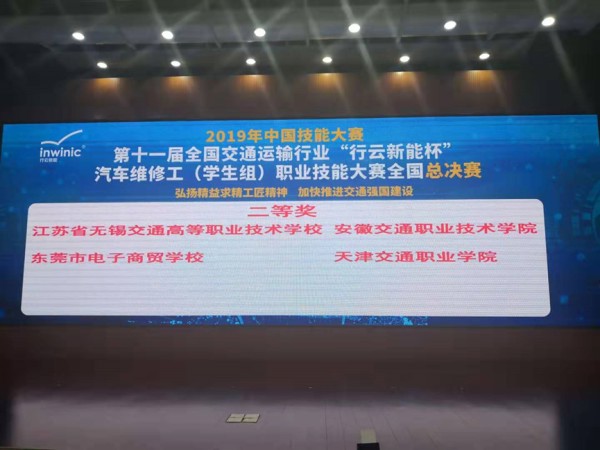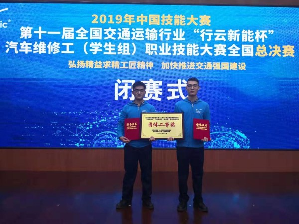 11月19日--21日,2019年中國技能大賽——第十一屆全國交通運輸行業“行云新能杯”汽車維修工(學生組)職業技能大賽全國總決賽在天津舉行。共有來自全國的44支隊伍進入總決賽,我院代表隊經過激烈角逐,取得全國第六的好成績,榮獲團體二等獎。