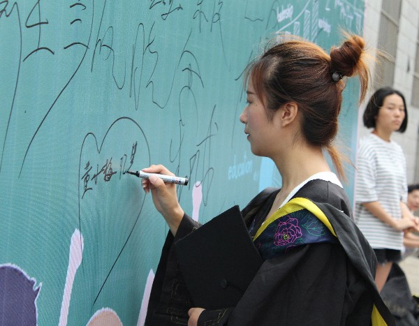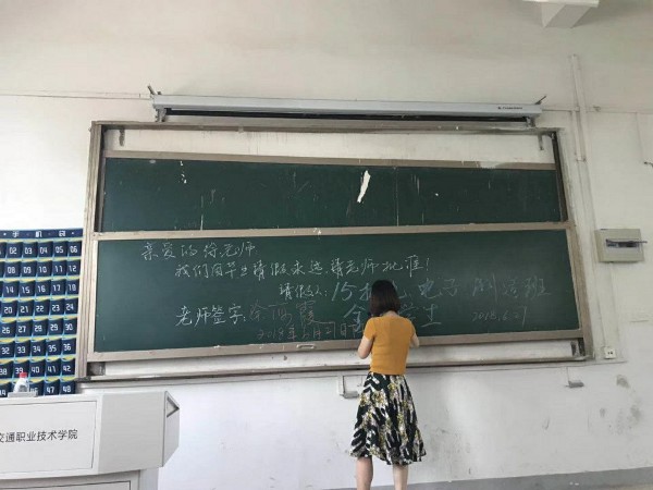 教學樓上、學生宿舍的的路邊,早已掛起“情系交院 志在四方”“祝2018屆畢業生昂首展翅,飛向人生另一個開闊天空”等歡送畢業生的橫幅。6月27日-29日在教學樓門口設立了畢業紀念主題板,為每一位學生提供了留言紙,畢業生通過留言寄托了對大學三年的美好回憶和對母校的深深祝福。由大一、大二部分學生組成的“小紅帽”志愿服務隊,幫助畢業生搬運行李,給畢業生離校提供暖心、貼心、細心的服務。