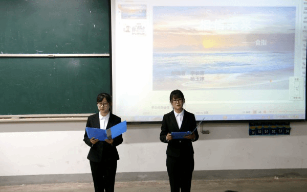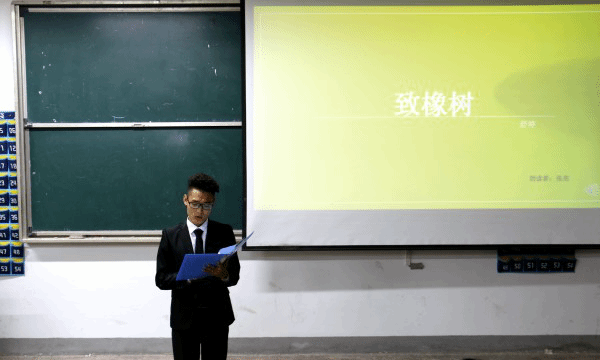 本次比賽共有十組參賽選手,在主持人宣布完比賽規(guī)則后,各組選手按抽簽順序依次上場。各組的誦讀形式多樣,或集體誦讀,或個(gè)人獨(dú)誦,并適當(dāng)配以音樂和PPT,充分展現(xiàn)了詩文朗誦的藝術(shù)感染力和舞臺(tái)表現(xiàn)力。17電子班張亮同學(xué)帶來的《致橡樹》,將自己的愛情觀表達(dá)的淋漓盡致,充滿著向往和憧憬。陳倪同學(xué)朗誦的《談生命》,以“一江春水”和“一棵小樹”為例,揭示了生命的生長,壯大和衰老的規(guī)律,她用充沛的感情為我們描繪了一幅生機(jī)勃勃的大自然美景,帶我們走近,觸摸它。選手們的深情誦讀,讓現(xiàn)場觀眾徜徉其中,聆聽和欣賞中華文明之美。