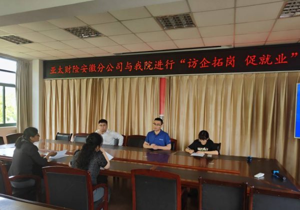 為深入貫徹落實(shí)黨中央、國(guó)務(wù)院關(guān)于高校畢業(yè)生就業(yè)工作的決策部署及教育部關(guān)于“訪(fǎng)企拓崗促就業(yè)專(zhuān)項(xiàng)行動(dòng)”工作部署,5月27日,我院與亞太財(cái)產(chǎn)保險(xiǎn)股份有限公司安徽分公司開(kāi)展訪(fǎng)企拓崗促就業(yè)交流座談會(huì)。亞太財(cái)險(xiǎn)人力資源負(fù)責(zé)人張運(yùn)強(qiáng)、黃佳佳等相關(guān)人員,院黨委委員、汽機(jī)系主任梁洪波和汽機(jī)系副書(shū)記汪莉參加會(huì)議。