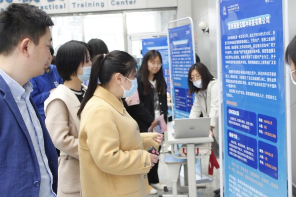 推介會現(xiàn)場來自蘇州相城區(qū)內(nèi)的蘇州三佳交通工程有限公司、禾邦電子(蘇州)有限公司、蘇州鈞達車業(yè)科技有限公司、蘇州上聲電子股份有限公司、江蘇德邦物流有限公司等31家重點企業(yè),紛紛向交院學子拋出“橄欖枝”,共提供532個就業(yè)崗位,涵蓋智能汽車、電子信息、工程機械、機電、自動化、物流、土木工程等領(lǐng)域。推介會現(xiàn)場吸引了汽機系270余名學子進場洽談交流,少數(shù)為應屆畢業(yè)生,多數(shù)為即將畢業(yè)的大二學生。