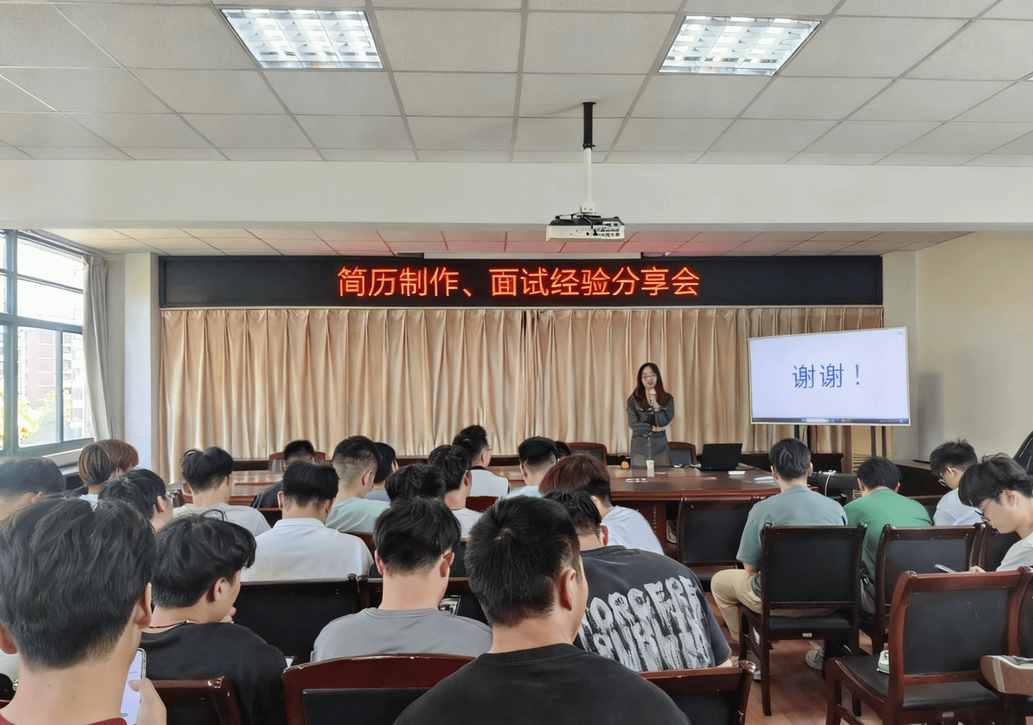 隨后開展的“就業經驗交流會”上,優秀畢業生代表分享了求職、創業、專升本的真實經歷。他們從簡歷優化、行業選擇、筆試準備等方面傾囊相授,尤其針對“無實習經驗如何突圍”“跨專業求職技巧”等痛點問題,提供了切實可行的解決方案,現場互動頻繁,掌聲不斷。