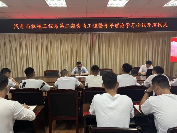 為深入開展學習貫徹習近平新時代中國特色社會主義思想主題教育,進一步加強青年大學生的思想政治引領,扎實做好青年馬克思主義者的培養工作,汽車與機械工程系于5月30日晚舉行第二期“青馬工程”暨青年理論學習小組開班儀式。汽機系黨總支書記沈勁松、主任輔導員羅瑋瑋、第二期“青馬工程”和青年理論學習小組學員參會,開班儀式由系團總支書記鐘飛飛主持。