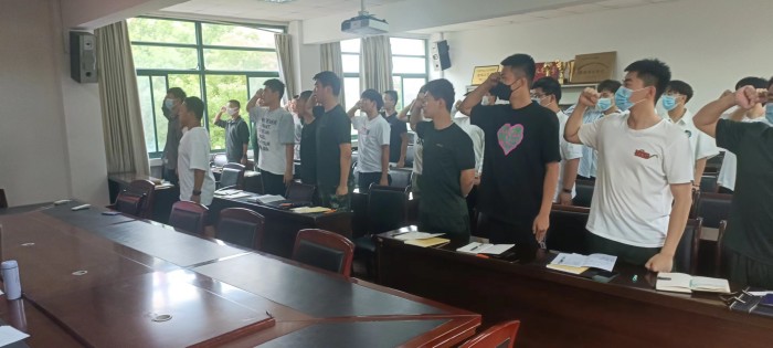 鐘飛飛結合本期培訓情況,對學員提出了具體學習要求。系學生會執行主席王傳懿帶領全體同學高舉右拳莊嚴宣誓,重溫入團時的錚錚誓言,讓同學們深切感受到青年團員身上沉甸甸的責任。開班儀式在同學們齊唱共青團團歌中閉幕。