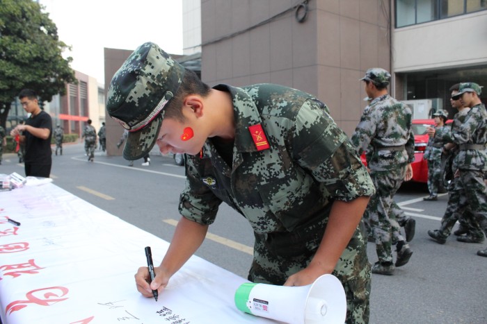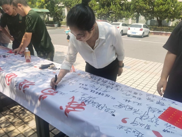 活動現場,老師和同學們紛紛在簽名海報上寫下對祖國母親的美好祝愿,并鄭重簽下自己的名字?!白鎳赣H,生日快樂”、“祝福祖國繁榮昌盛”、“愿祖國國泰民安”、“祖國我愛您”等一句句簡單而樸實的話語,承載了大家對祖國的美好祝福和濃濃的愛國之情。21汽修3班章安說:“生在紅旗下,長在春風里,作為一名青年學生,生逢盛世,我感到無比自豪,同時也倍感責任重大,我們必須努力拼搏,在青春的賽道上奮力奔跑,不負韶華,不負時代,不負人民!
