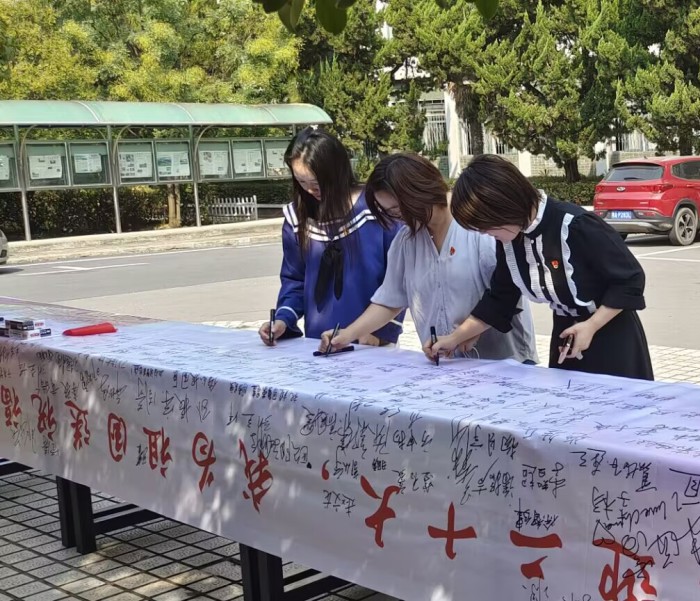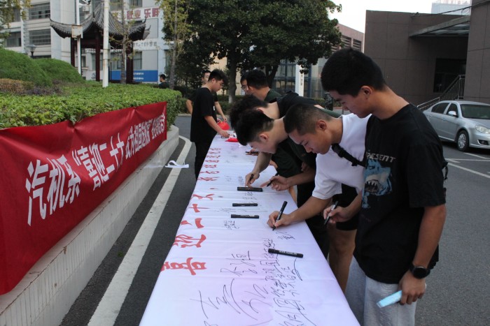 9月30日,汽車與機械工程系在南區校園開展“喜迎二十大 我為祖國送祝福”簽名寄語活動,慶祝偉大祖國七十三周年華誕,向黨的二十大獻禮。