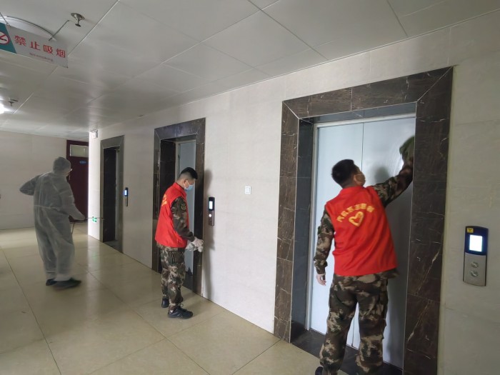 學生志愿者分成四個小組,分別進入各個宿舍樓開展消毒清理工作。一部分同學背著消毒設備,步行上下樓,對各個角落進行仔細消殺,另一部分同學手拿抹布,對電梯、門窗、樓道等進行擦拭,確保此次消殺活動不留死角、不留盲區。同時,志愿者們還進入寢室進行衛生知識宣傳,囑咐同學們打掃宿舍衛生時不要忽視水池下方、陽臺拐角、衛生間等衛生死角,叮囑同學們要勤通風,勤晾曬衣服、被子。志愿者們不辭辛苦,跑上跑下,經過了2個多小時的清理和消毒,各棟宿舍樓里充滿清新的氣息。