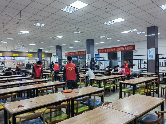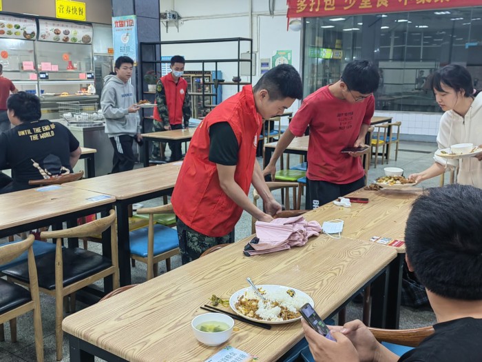 5月10日,汽機(jī)系學(xué)生會(huì)志愿服務(wù)隊(duì)深入南區(qū)食堂,化身為一個(gè)個(gè)“食堂衛(wèi)士”。有的志愿者認(rèn)真維持就餐秩序,提醒同學(xué)們排隊(duì)時(shí)注意間隔安全距離,督促?gòu)V大同學(xué)佩戴好口罩;有的志愿者提醒同學(xué)們進(jìn)行餐前洗手,保持衛(wèi)生,避免病從口入,提升安全用餐意識(shí);有的志愿者督促同學(xué)們就餐后及時(shí)將餐盤放到指定回收點(diǎn),將垃圾進(jìn)行分類,樹(shù)立分類意識(shí),讓同學(xué)們養(yǎng)成良好的就餐習(xí)慣,志愿者們勤勤懇懇,以實(shí)際行動(dòng)引導(dǎo)同學(xué)們規(guī)范疫情防控形勢(shì)下的就餐禮儀。