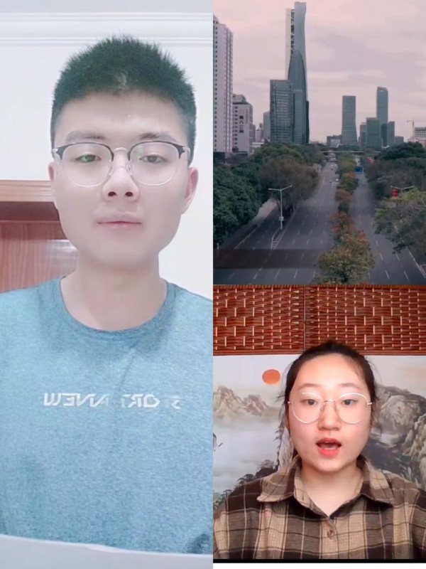 由于疫情的原因,同學們現在還處于居家學習中,因此此次主題朗誦活動在線上進行,參賽者精心拍攝好朗誦視頻后將作品發給組織者,組織者組織評委對作品進行評分。雖然沒有正式的比賽場所,但同學們依然能夠積極應對,演講形式多樣,或直面鏡頭抒發情感,或在演講中插入圖片和視頻。大家選擇自己喜歡的詩歌或者自行創作詩歌表達對疫情中一個個勇敢逆行者的致敬,用聲音去演繹疫情中的一個又一個感人的故事,表達愛國情懷和戰勝疫情的必勝決心。