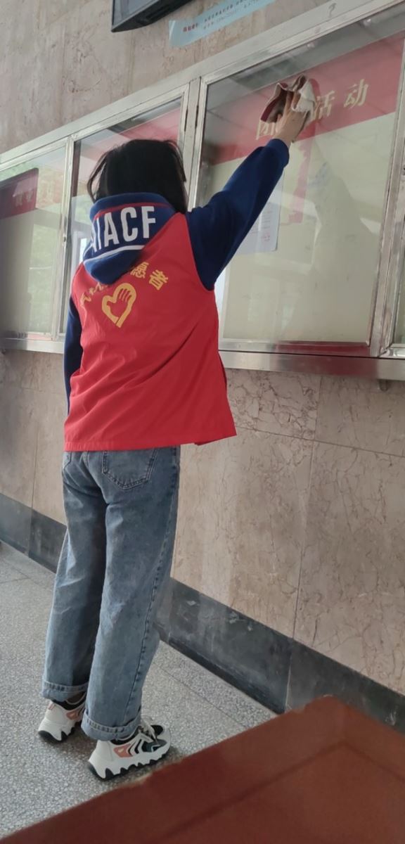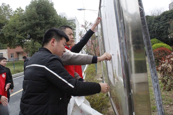 志愿者們一大早就熱火朝天地干了起來。雖說三月大地回春、萬物復蘇,可暴雨后的清晨卻依然寒涼,但這些都擋不住同學們的火熱心情。大家按照分好的小組幫助環衛工人撿垃圾,幫老師擦拭黑板,對衛生死角進行清理,幫助家屬區的老人等等。除此之外,同學們還進行了環保宣傳,以一己之力向大家說明環境保護的重要性,互相分享志愿者心得與環保經驗。