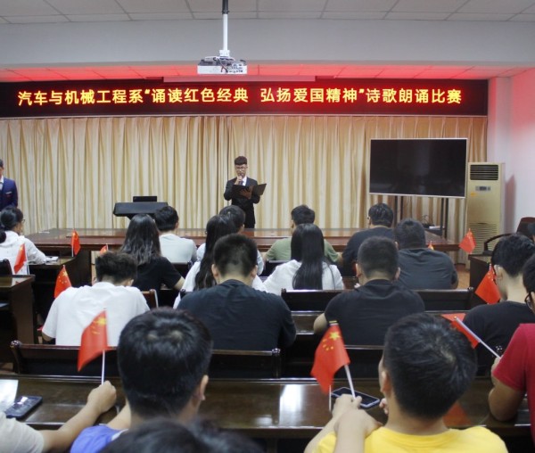 為慶祝中華人民共和國成立70周年,激發廣大同學的愛國情懷,汽車與機械工程系團總支分別于9月28日和10月14日晚舉辦了“誦讀紅色經典,弘揚愛國精神”的主題詩歌朗誦比賽。