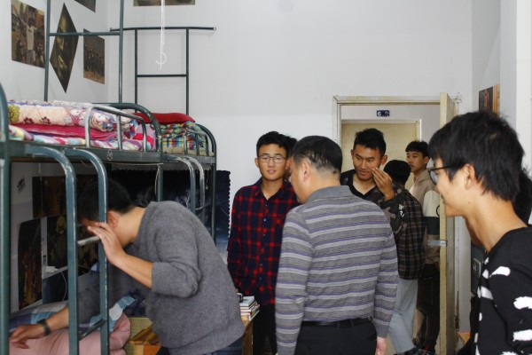 10月31日下午,系黨總支書記李家林及各位輔導員進寢室觀看,和同學們著重強調了寢室文化的重要性,希望同學們以寢室文化設計大賽活動為契機,保持宿舍優雅、舒適的環境常態化,良好的生活習慣持續化,營造一個安全,文明,舒適,積極向上的學習生活環境。