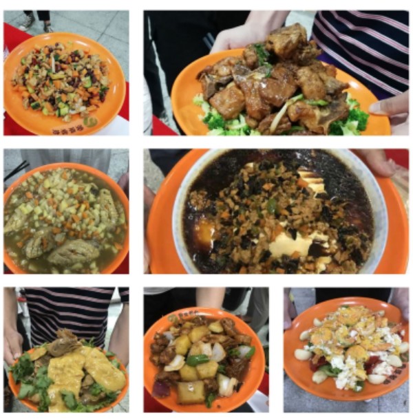 下午2:30,伴隨著主持人一聲“準備好了沒有?”“正式開火!”,南區食堂里呈現一派熱鬧的景象。比賽第一個環節是特色賽的比拼,在規定的20分鐘內,各隊選手需烹飪出自己拿手的特色菜。煎、炒、烹、炸……選手們爭分奪秒,情緒高漲。在選手們嫻熟的刀工和精心的烹飪下,至尊蝦仁炒飯、宮保雞丁、過橋豆腐、芙蓉大蝦、家常大盤雞、可樂雞翅等一道道色香味俱全菜肴新鮮出爐,比賽場內香氣四溢,讓在場的人垂涎欲滴。在給評委端上美味佳肴的同時,同學們給大家介紹了自己的菜品由來、烹飪方法、創意思路等等,讓在場觀眾充分感受到中華傳統美食的博大精深,還有濃濃的家鄉情家鄉味。評委們根據成品菜的色、香、味、形及營養、創意、造型等方面認真評分,確定18231班、18242班等6支代表隊晉級參加第二環節的指定菜比拼。