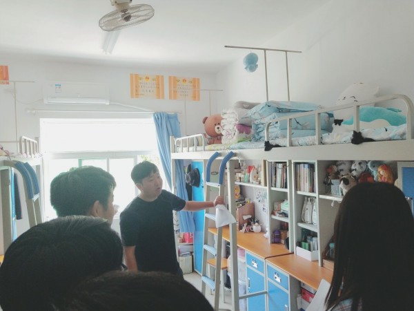 5月8日下午,在寢室內部開展淘汰賽,以寢室為單位,老師和學生代表們深入宿舍對同學們的內務整理及被子折疊情況進行綜合評比,確定32個宿舍進入現場比拼環節。