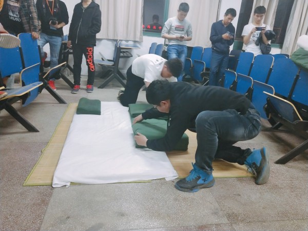 本次比賽分為賽前培訓、淘汰賽和現場比賽三個環節。為了讓同學們深入領會疊被子的規范要求,4月16日晚,寢室代表齊聚605教室,由系部退伍學生為大家現場講解、示范疊被子的動作要領及規范要求。退伍學生嫻熟的動作讓同學們看的驚嘆不已,同學們仔細請教疊被子細節,以便準確傳達到寢室的每個人。