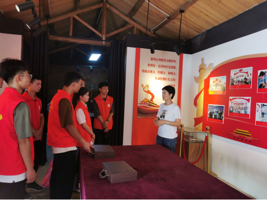 位于肥東縣中西部的眾興鄉,不僅天藍水碧、滿目蔥郁,還有濃厚的紅色文化底蘊,是肥東縣第一個黨支部誕生地、合肥地區早期黨組織重要發源地、合肥地區團組織創始地。懷著崇高的敬意,實踐團在社區任書記的帶領下,參觀了東鄉支部展陳中心。珍貴的文物實物、詳實的黨史資料、寫實的影像資料展示了中共合肥東鄉支部的發展歷程及早期肥東共產黨員的革命活動。讓大家深刻體悟了肥東第一位共產黨員張伯平、肥東第一位女共產黨員龔建平、革命先輩人物孫子膜等早期共產黨人追求真理、振興中華的愛國主義精神。實踐團成員紛紛表示要繼承和發揚紅色革命精神,初心如磐,奮楫揚帆。參觀后,任書記還和同學們做了深入的交談,和同學們分享了自己的成長經歷,東鄉社區農旅融合、賦能鄉村振興的進程,啟發同學們要有家國情懷,勇于在社會實踐中鍛煉自我,勇擔時代重任。