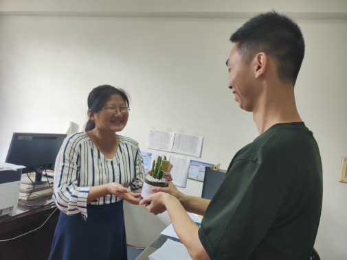 9月7日晚,南區三樓會議室聚集了一群同學,大家認真觀看栽種綠植視頻,用心的填土、栽種、做插簽、寫留言,懷著對老師滿心的感恩親手種下一顆顆小綠植,感謝老師的“甘為綠葉,無私奉獻”。9月8日早上,同學們親自將綠植送到老師們手里,并送上最誠摯的節日祝福。一盆綠植一片深情,一抹新綠一片生機,愿小小綠植傳遞同學們深深的祝福,也為辛勤工作的老師們舒緩疲憊!