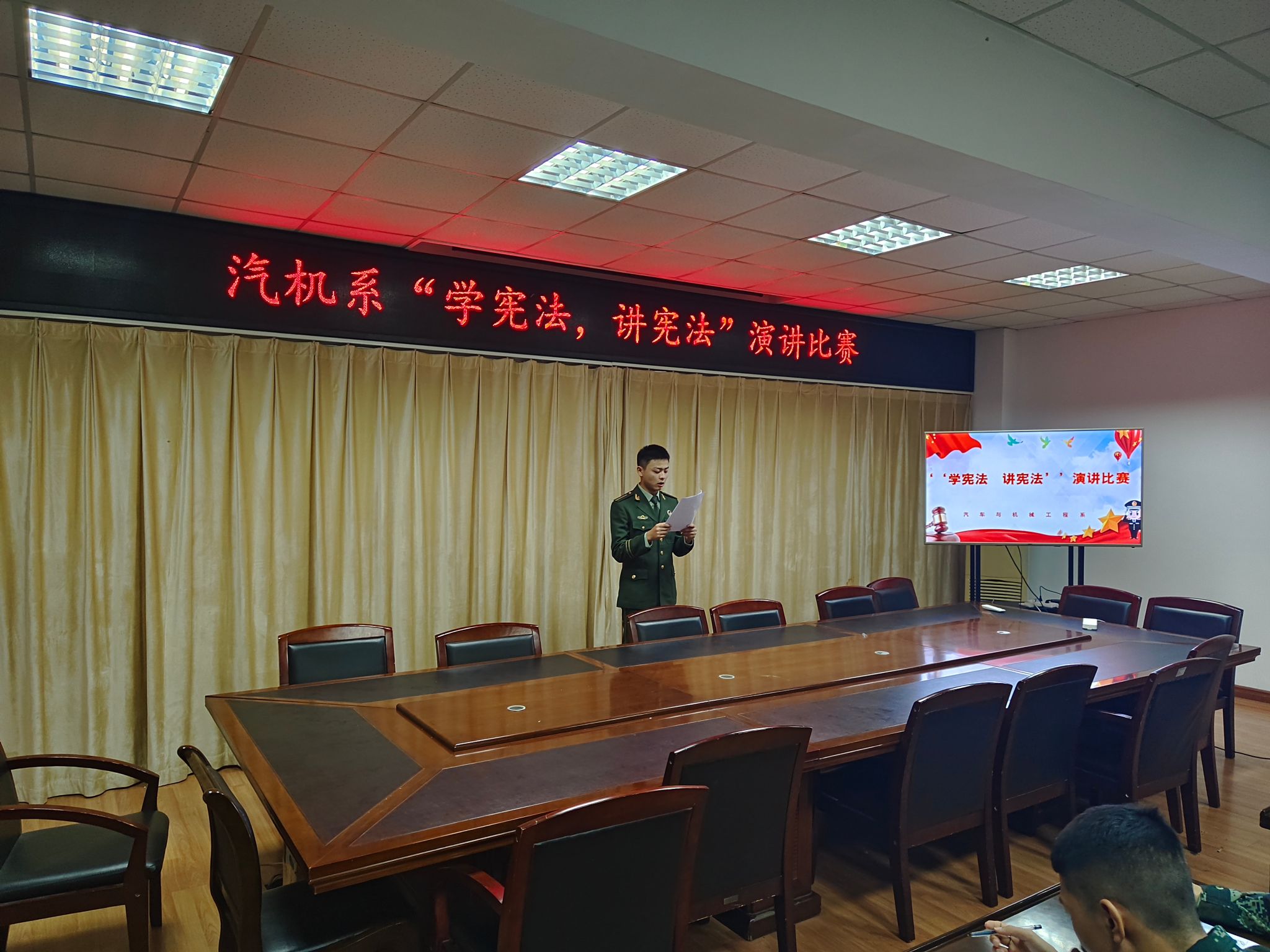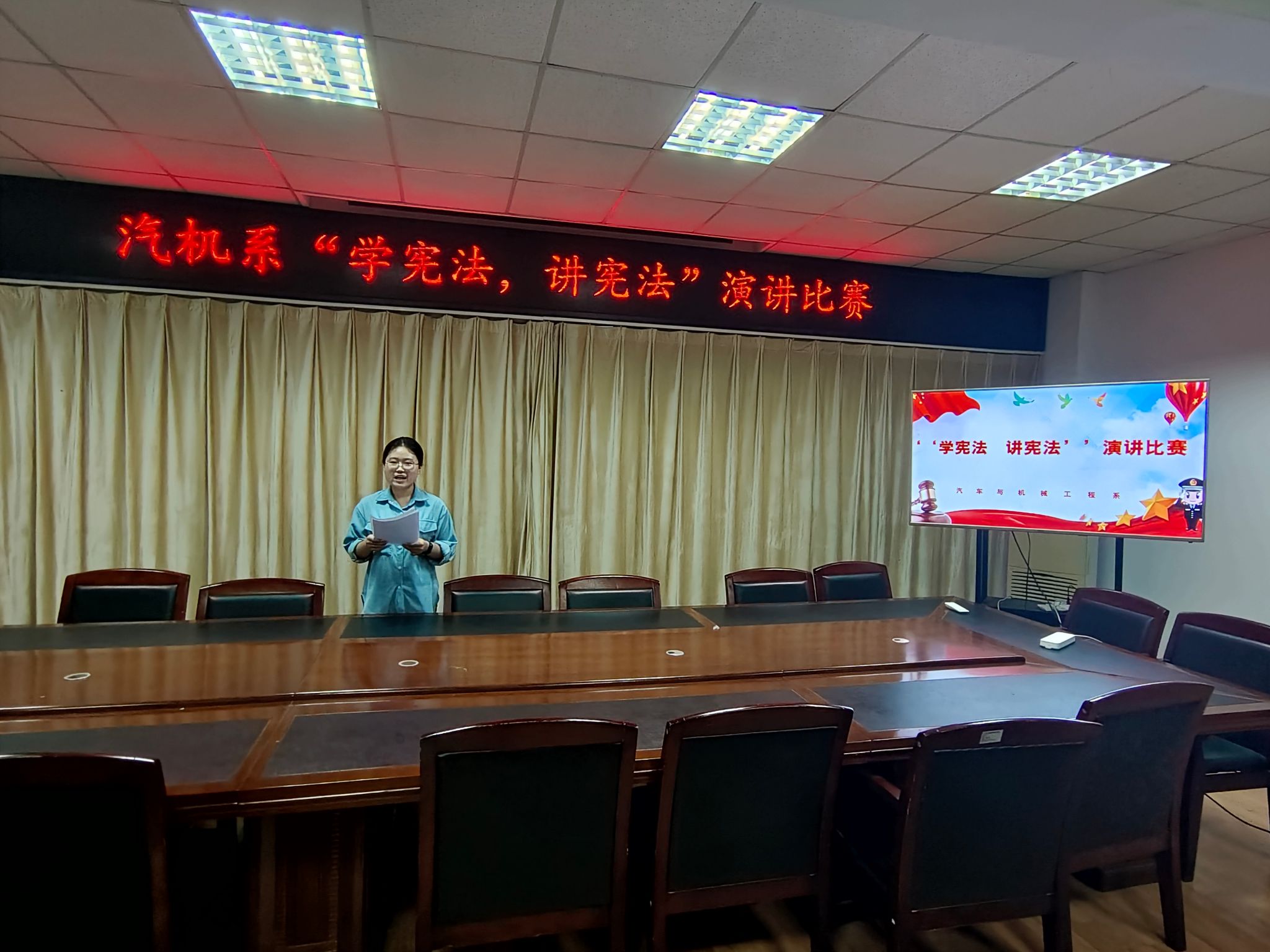 為深入學(xué)習(xí)貫徹習(xí)近平法治思想,培養(yǎng)、增強(qiáng)學(xué)生的憲法意識(shí)和法治素養(yǎng),9月25日,汽車與機(jī)械工程系“學(xué)憲法 講憲法”主題演講比賽在南區(qū)教學(xué)樓三樓會(huì)議室舉行。來(lái)自大一大二的三十多名同學(xué)參加了此次演講比賽。
