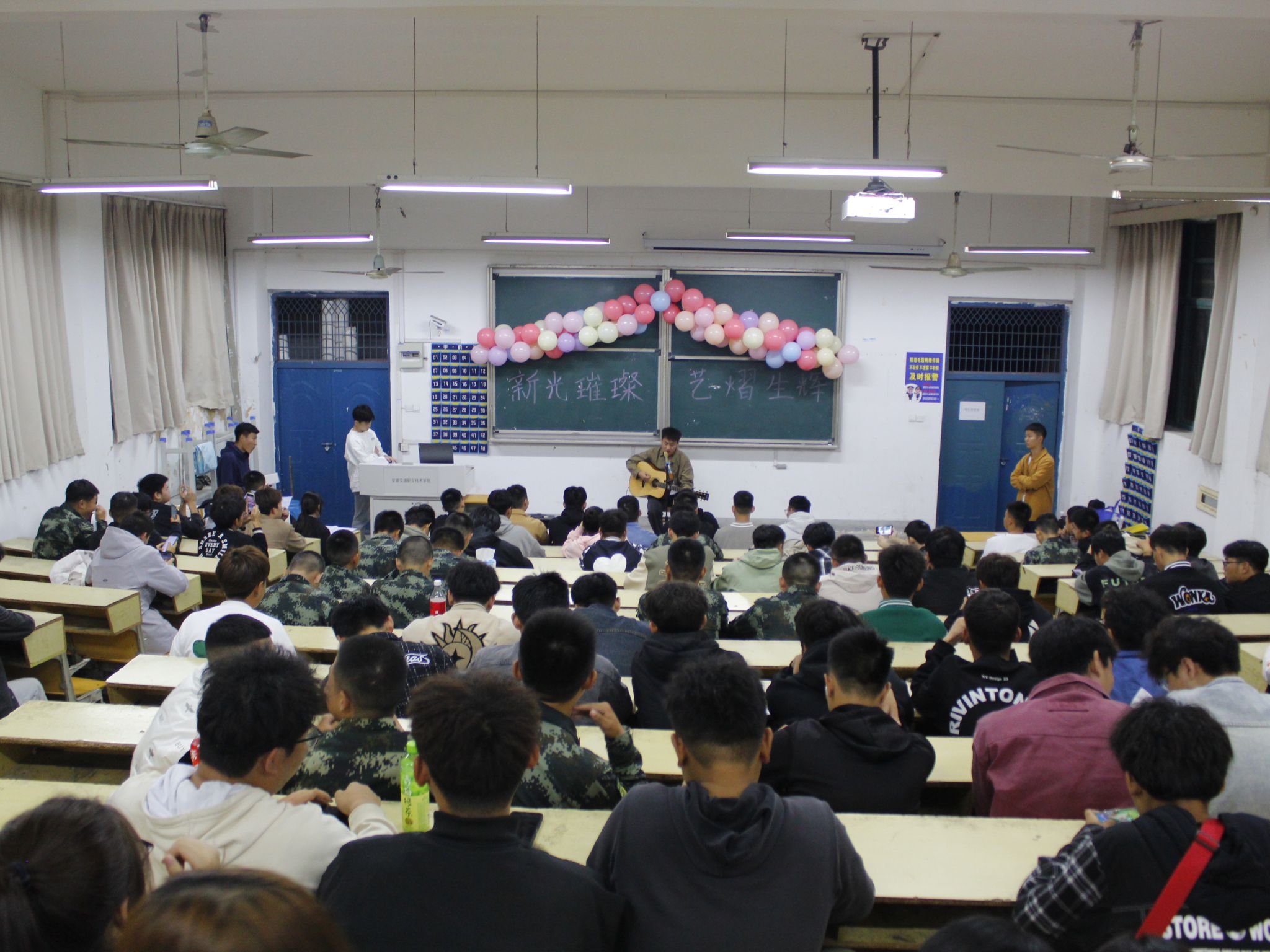 為豐富校園文化活動,增進新老生的交流互動,展現青春的朝氣與活力,11月5日晚,汽車與機械工程系“‘新’光璀璨,‘藝’熠生輝”新老生才藝交流活動在西街101教室舉行。