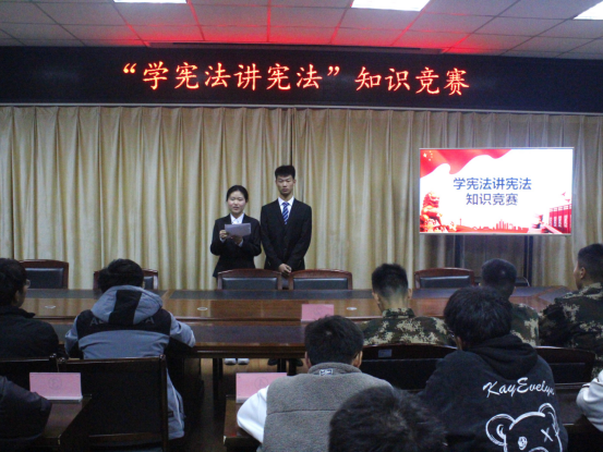 為深入學習貫徹黨的二十大精神和習近平法治思想,普及憲法知識,強化憲法意識,弘揚憲法精神,提高同學們尊法、學法、守法、用法的意識和能力。汽車與機械工程系于11月26日晚在南教三樓會議室開展“學憲法 講憲法”憲法知識競賽活動,將憲法精神內植于心、外踐于行。