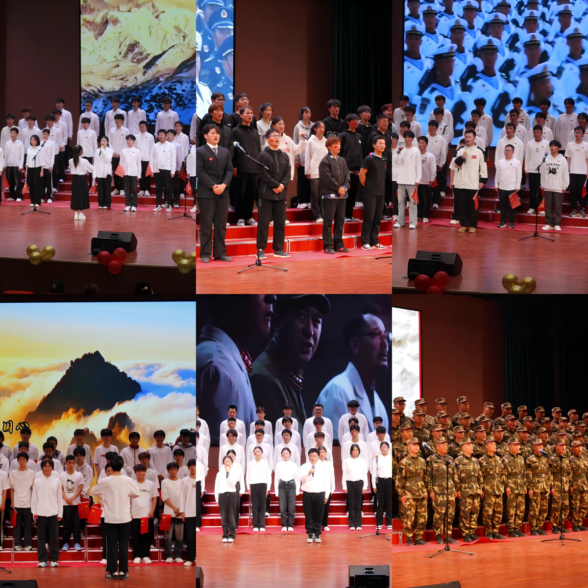 經過層層角逐脫穎而出的12支班級代表隊依次登臺,用真摯的情感和激昂的歌聲演繹著一首首經典紅歌。當《紫荊花盛開》的旋律響起,演唱者們眼神中滿是深情,他們的歌聲如同輕柔的微風,拂過每一個人的心間,表達了對香港回歸祖國懷抱的喜悅與對維護祖國統一的堅定信念。《沒有共產黨就沒有新中國》的節奏一出,那堅定有力的歌聲,如同敲響的戰鼓,每一句都帶著磅礴氣勢,演唱者們整齊劃一的動作,彰顯著對黨的忠誠與熱愛。《明天會更好》歌者們溫暖的笑容和輕柔的和聲,讓希望在空氣中彌漫。