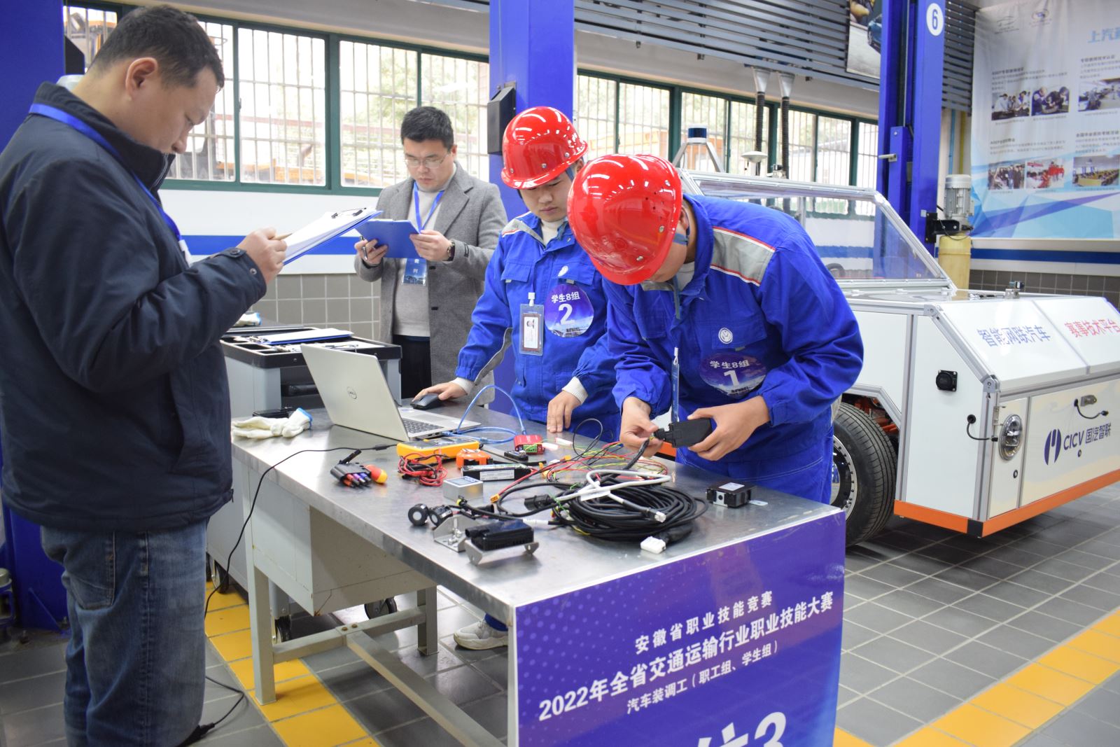 3月16至17日,由省交通運輸廳、省人社廳主辦,柯柏文(深圳)科技有限公司和合肥博仕達汽車技術服務有限公司協辦的安徽省職業技能競賽——2022年全省交通運輸行業職業技能大賽汽車裝調工(職工組、學生組)賽項在我院成功舉辦。來自全省13支代表隊共計28名選手,分別以理論知識和實踐技能兩種方式進行角逐,我院選手李飛黃、朱佳豪榮獲學生組一等獎。