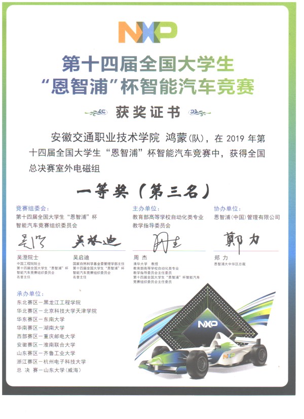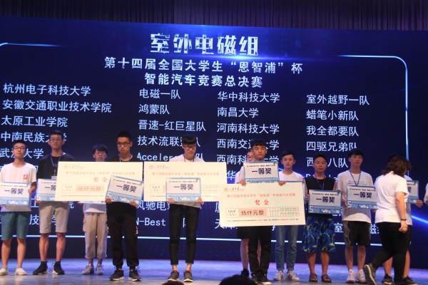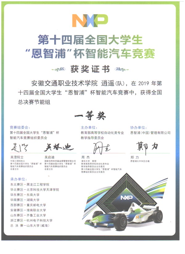 8 月 22日至 25日,第十四屆全國大學生 “恩智浦” 杯智能汽車競賽全國總決賽在山東大學(威海)舉行,本屆比賽共分為四輪組、三輪組、雙車會車組、無線節能組、信標組、室外電磁組、室外光電創意組、室內對弈創意組、中小學組等9個組別。來自全國185所高校、391支隊伍、共計1700余名師生參加了本次決賽。由我系黃智勇、張翼兩位老師指導的參賽團隊,經過激烈角逐,在本屆比賽中共取得2個國家一等獎,位列安徽賽區之首,是繼去年首獲國家一等獎之后的再一重大歷史性突破!