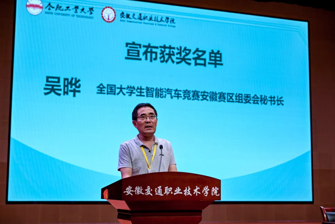 本次大賽由安徽省教育廳、中國自動化學會聯合主辦,合肥工業大學與安徽交通職業技術學院共同承辦。安徽省教育廳職業與成人教育處處長饒慶眉、我校黨委副書記、校長孫曉雷、教育部高等學校自動化類專業教學指導委員會委員、中國科學技術大學吳剛、全國大學生智能汽車競賽組委會秘書長、清華大學卓晴、全國大學生智能汽車競賽安徽賽區組委會秘書長、合肥工業大學吳曄、全國大學生智能汽車競賽安徽賽區組委會副秘書長、合肥工業大學楊興明等出席閉幕式,閉幕式由校黨委委員、副校長梁洪波主持。