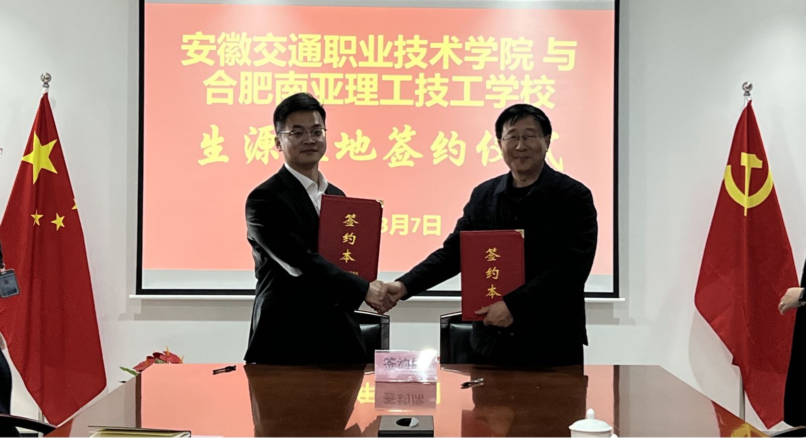 月7日,學院與合肥南亞理工技工學校舉行“生源基地”簽約儀式。副院長王豐勝、教務處處長湯峰、汽機系主任梁洪波、院招生辦主任周偉、南亞校長杜銘軒、副校長席俊宏、校長助理杜婷婷及相關部門負責人員出席本次簽約儀式。儀式由南亞副校長席俊宏主持。