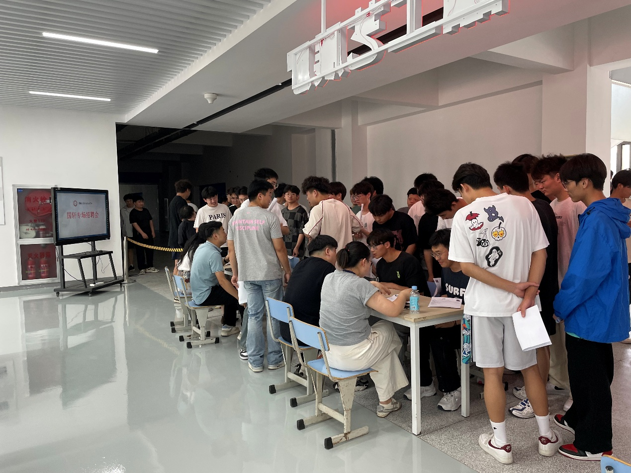 宣講會(huì)結(jié)束后,在致遠(yuǎn)樓二樓的國(guó)軒展廳舉行了國(guó)軒專場(chǎng)招聘會(huì),現(xiàn)場(chǎng)氣氛熱烈。張守洪一行還參觀了正在建設(shè)中的國(guó)軒實(shí)訓(xùn)基地。(汽機(jī)系 周巧玲)