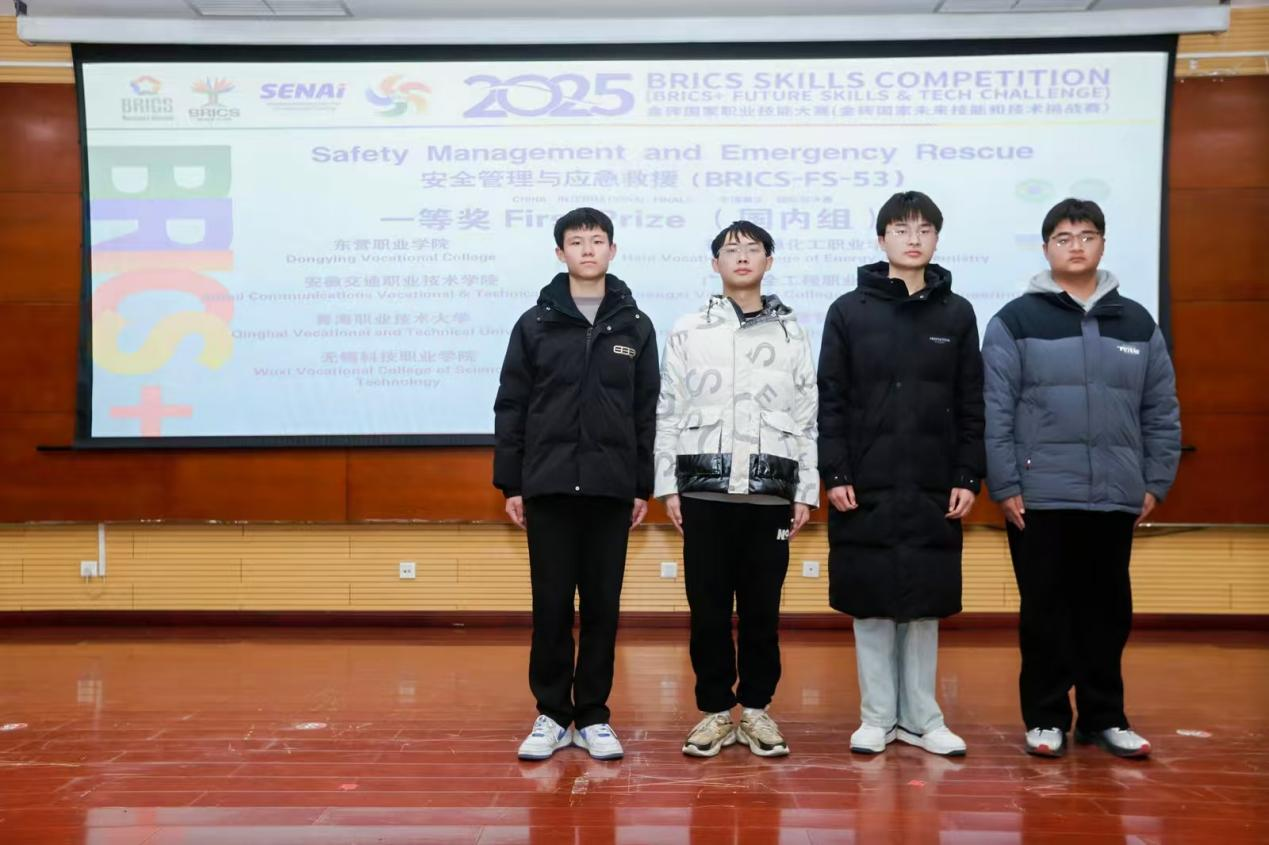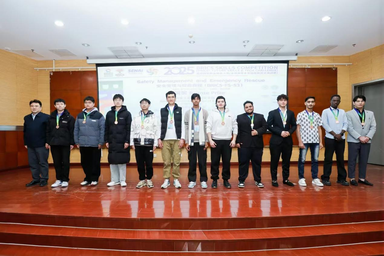 12月22日至25日,2025金磚國(guó)家職業(yè)技能大賽“安全管理與應(yīng)急救援”賽項(xiàng)國(guó)際總決賽順利閉幕。由土木建筑學(xué)院黨總支副書記王佳賓領(lǐng)隊(duì),史晴晴、袁和勇兩位老師指導(dǎo),24安全1班劉樂樂、楊子麟、陳志豪、陳禮豪四名同學(xué)組成的參賽團(tuán)隊(duì),與來自中國(guó)、俄羅斯、印度、巴西、南非及阿富汗、巴基斯坦等十余個(gè)國(guó)家的78支隊(duì)伍同臺(tái)競(jìng)技。最終,團(tuán)隊(duì)?wèi){借扎實(shí)的專業(yè)功底和出色的臨場(chǎng)發(fā)揮,斬獲國(guó)內(nèi)組一等獎(jiǎng)第三名、國(guó)際組一等獎(jiǎng)第四名(銅獎(jiǎng))的優(yōu)異成績(jī)。