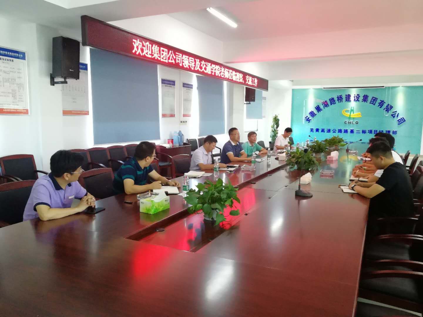 兩天來,王主任一行在巢湖路橋集團黨委書記李青冬、人力資源部部長湯東方等企業領導的陪同下,分別調研了巢湖路橋位于湯池大道建設工程項目一標、廬江縣暢通工程張葛路1標S319軍二路改建工程1標,S11蕪湖至黃山高速公路路基工程02標項目部,在每個項目部,都召開了現場調研會,與企業領導,項目經理、技術負責人、實習學生等面對面交流,了解學生暑期在企業的實習情況,調研企業對我系學生培養的意見和建議。