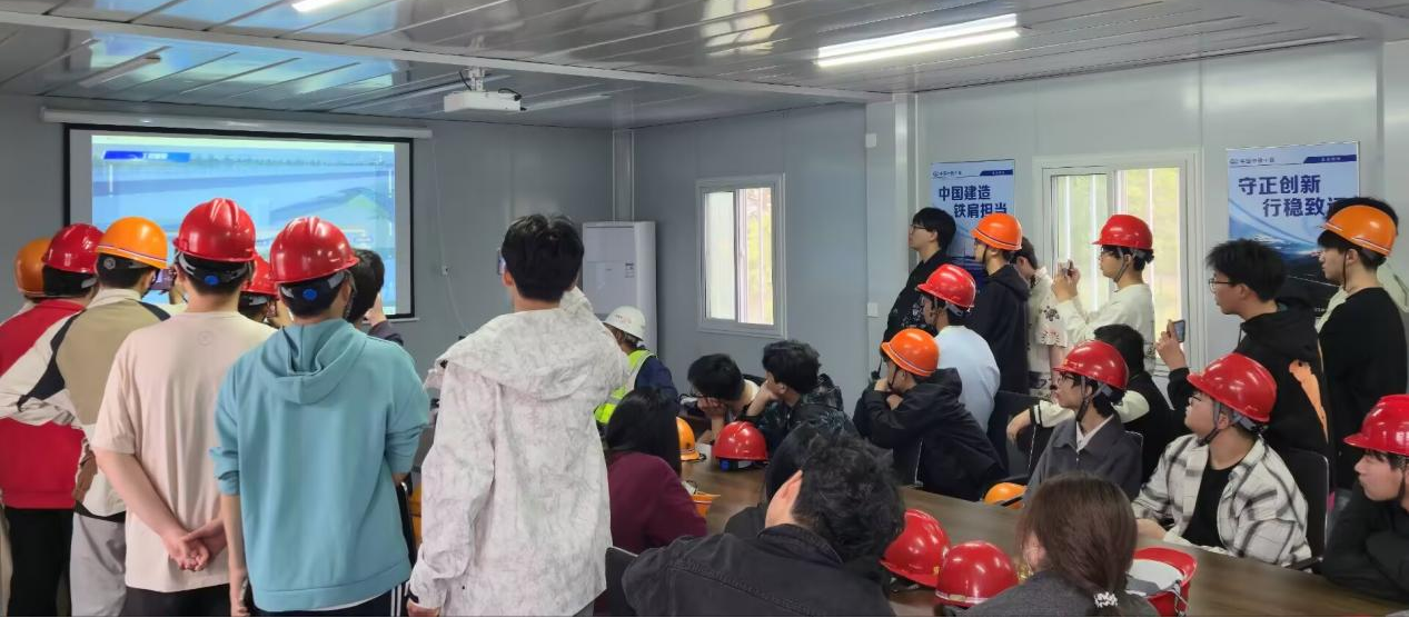 項目俞孟良工程師分別在現場和會議室為同學們講解跨寧西鐵路轉體橋梁的施工工藝、流程和技術控制的重難點,對同學提出的問題進行詳細解答。