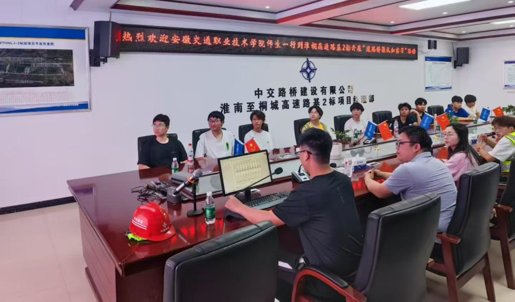 隨后,同學們又奔赴新建的淮銅高速淮南段2標段施工現場。在這里,中交路橋建設有限公司項目總工李高平親臨現場,為學生們詳細介紹莊墓河特大橋項目情況,涵蓋主橋施工流程、引橋梁板預制施工工序以及樁板式路橋施工工藝等關鍵環節。通過項目虛擬動畫和實景航拍視頻,李總工生動地展示了項目建設全過程,并耐心解答了同學們的提問,讓同學們對路橋建設有了更直觀、更深入的認識。