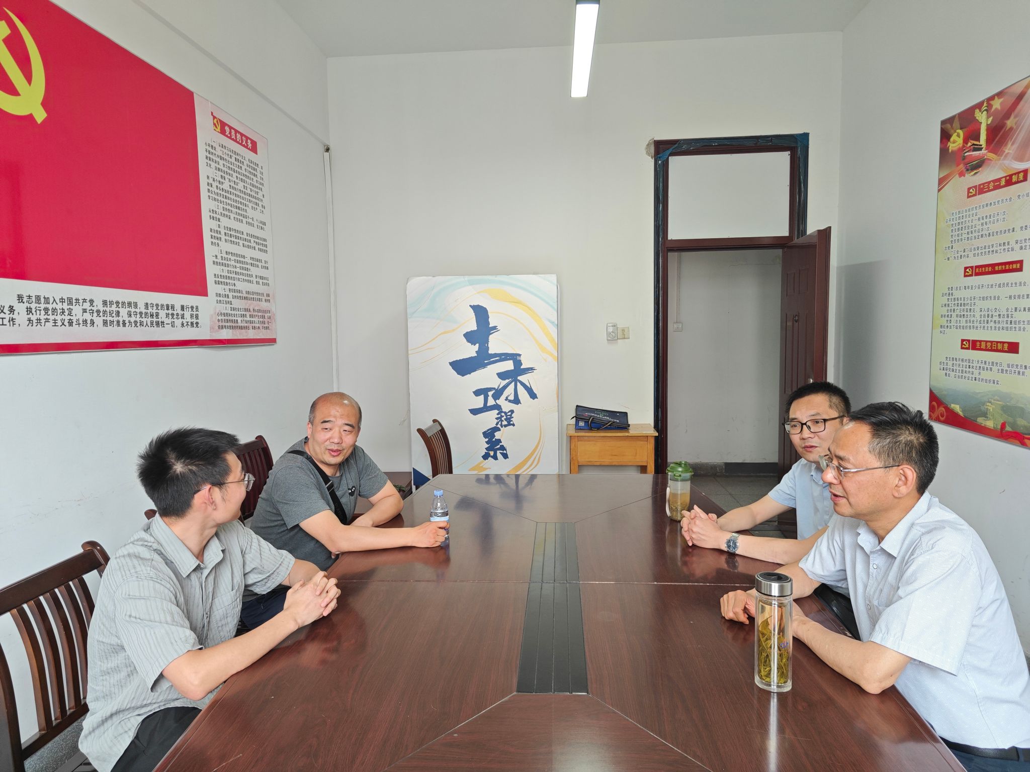 6月2日,安徽工業大學建筑工程學院專業教師譚坦一行四人來我系開展聯合培養本科教育教學工作交流活動,土木工程系主任王東、道路橋梁工程教研室主任王雷及相關專業教師參加交流。