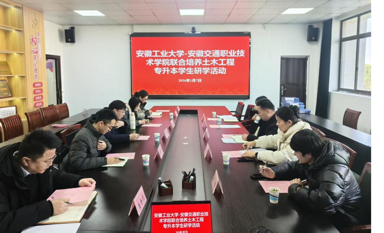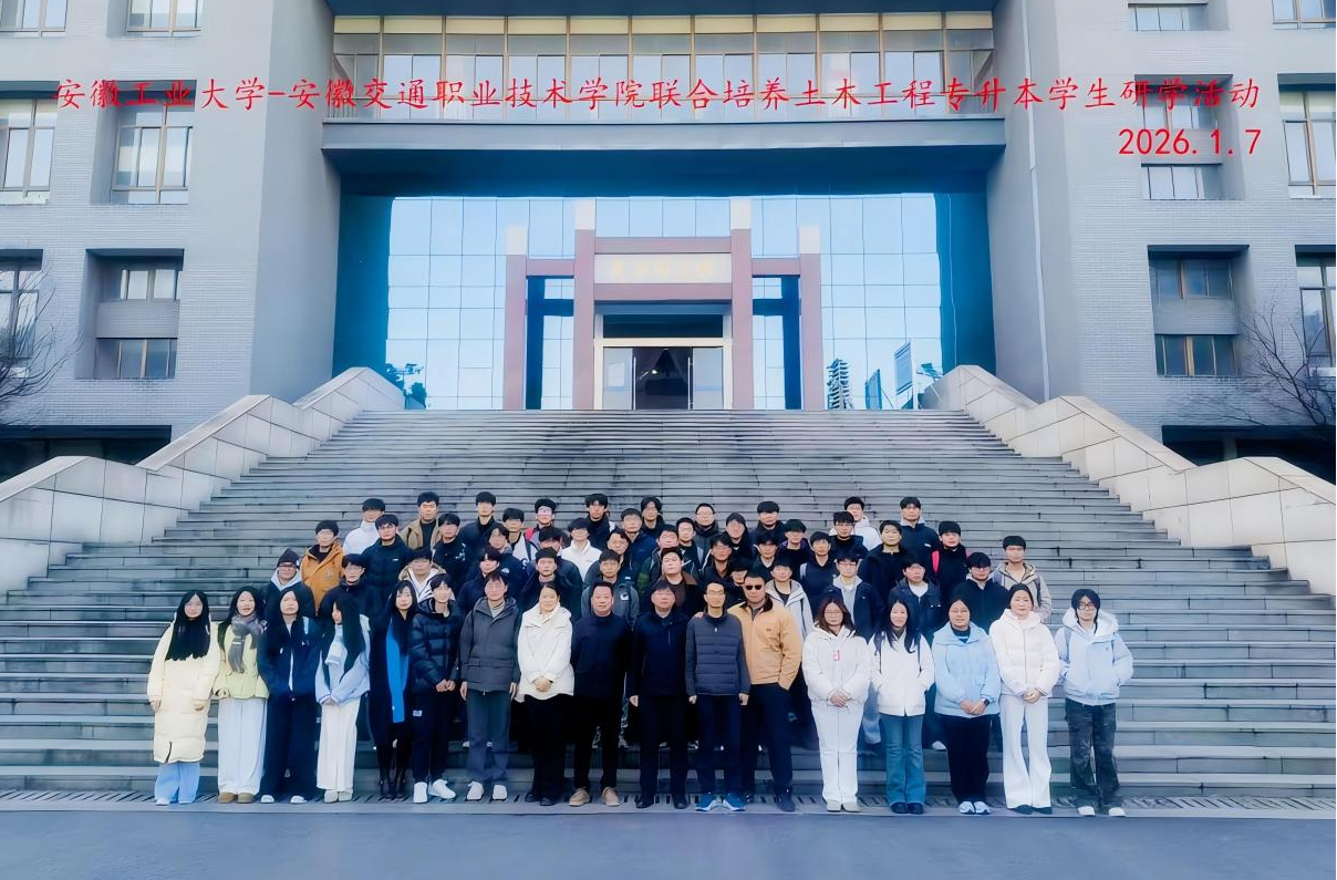 為深化校際協同育人,提升土木工程(專升本)專業聯合培養質量,1月7日上午,土木建筑學院副院長紀凱一行,帶領2025級土木工程(聯合培養)全體學生,赴安徽工業大學建筑工程學院聯合開展研學交流活動。安徽工業大學建筑工程學院黨委書記張虎、副院長呂忠、方圓及骨干教師出席活動。