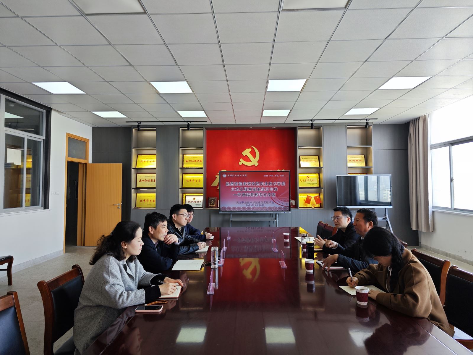 2023年3月28日,土木工程系副主任王守勝率建筑與市政工程教研室主任韓彰及孫鵬軒、張雅芬一行赴蕪湖職業(yè)技術(shù)學(xué)院建筑工程學(xué)院進行工作調(diào)研交流,建筑工程學(xué)院黨總支書記汪濤、院長方從嚴(yán)及實訓(xùn)、教學(xué)相關(guān)部門負(fù)責(zé)人參加會議。