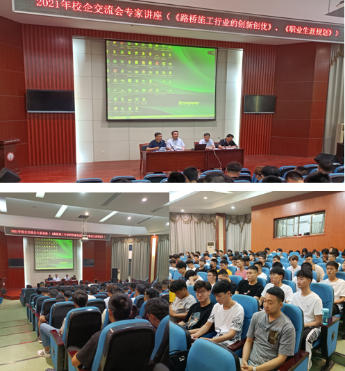 2021年6月3日,安徽省公路橋梁工程有限公司總經理助理、人力資源部經理沈壯、總師辦主任劉曉晗在北校區報告廳開展路橋施工行業的創新創優及職業生涯規劃主題講座,學院土木工程專業和道路橋梁工程技術專業本、專科學生參加此次專題講座。]