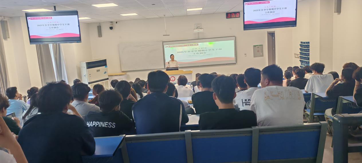 5月14日,土木系召開期中班干部工作例會,系黨總支副書記朱蓉,主任輔導員蔣鳳嬌、團總支負責人武慶媛、以及23級、24級各班班長、團支書參會。