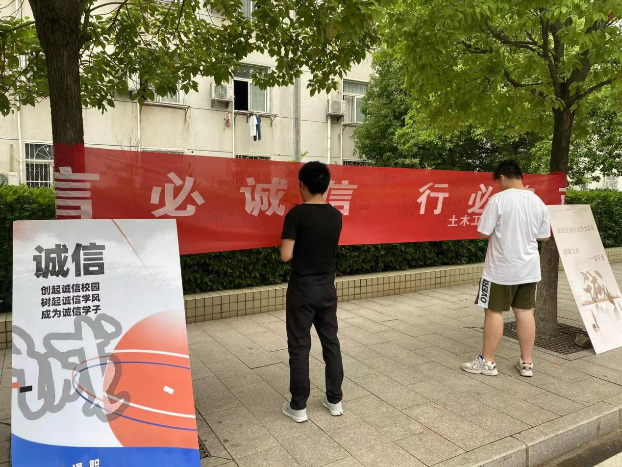 為弘揚交院“誠信為本,一諾千金”的校園精神,土木工程系團總支在我校學生宿舍樓下開展了“誠信簽名”的主題活動,通過活動加強我校學生誠信為本的理念。本次簽名活動交院學子積極參與,橫幅上的簽名正是學生們對誠信理念的肯定,活動氣氛熱烈,在學生會的宣傳下,同學們進一步加深了誠信意識,充分認識到誠實守信,理性消費的必要性和重要性。