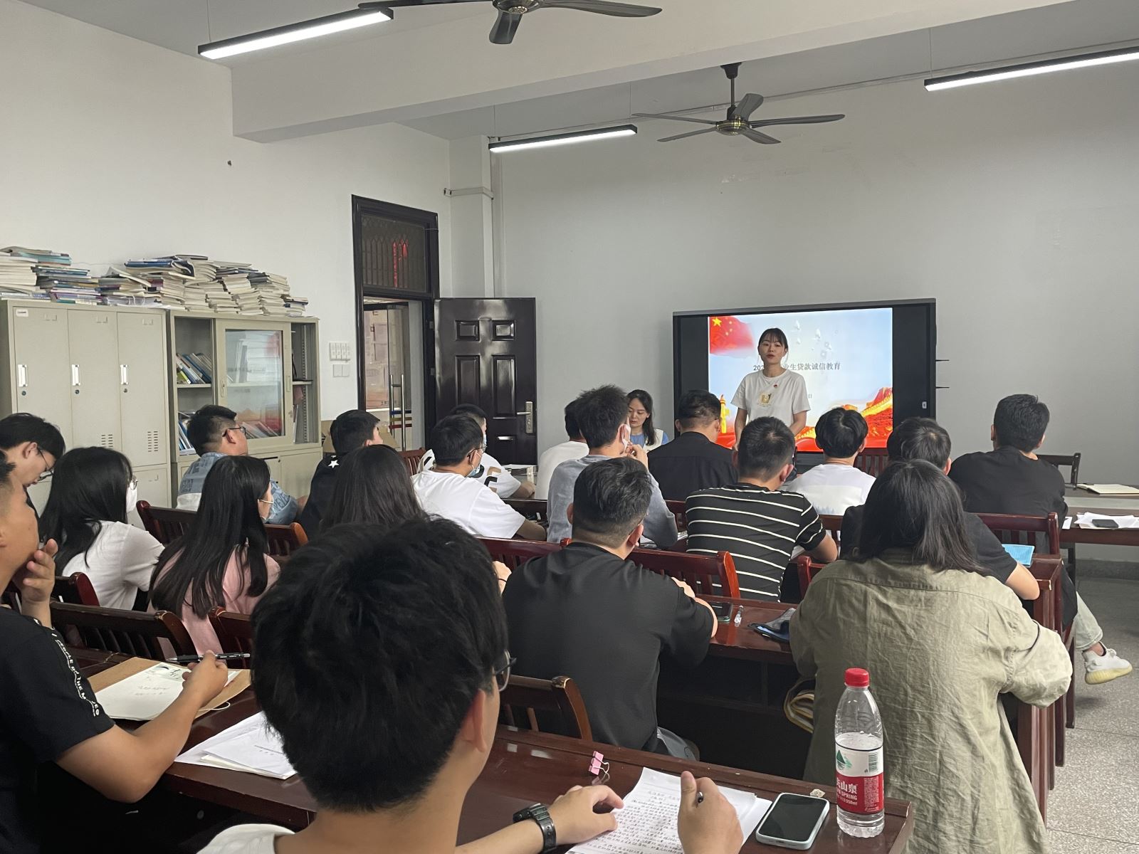 2022年5月27日下午3點,在系會議室,召集各畢業班代表開展了“助學貸款誠信教育”,重點講解還款流程、按期還款的重要性,隨后各畢業班級輔導員也在班會中向學生傳達誠信還貸的重要性。