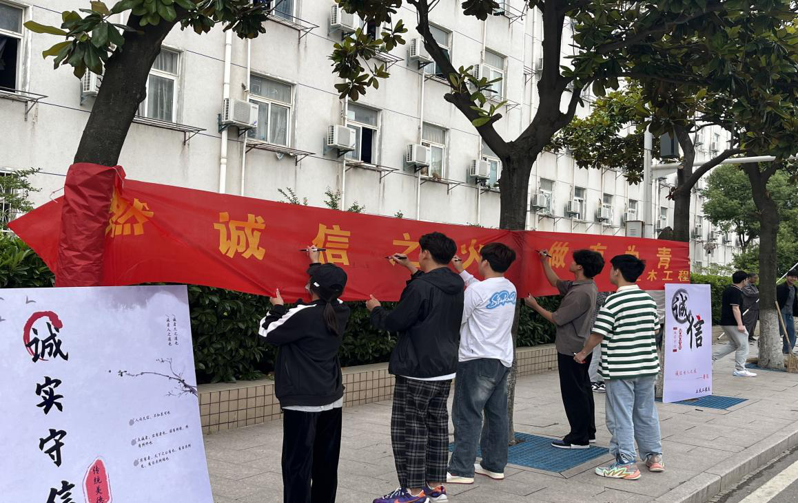 為弘揚交院“誠信為本,一諾千金”的校園精神,土木工程系團總支在我校學(xué)生宿舍樓下開展了“誠信簽名”的主題活動,通過活動加強我校學(xué)生誠信為本的理念。本次簽名活動交院學(xué)子積極參與,橫幅上的簽名正是學(xué)生們對誠信理念的肯定,活動氣氛熱烈,在學(xué)生會的宣傳下,同學(xué)們進一步加深了誠信意識,充分認識到誠實守信,理性消費的必要性和重要性。